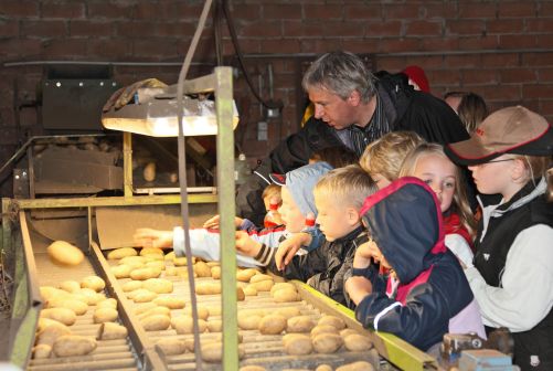 "Die Kartoffeln werden mit einer Tropfbewässerung, die 30-40 % Wasser einspart, bewässert. Durch unsere Photovoltaikanlage auf dem Dach erzeugen wir Energie. Wir heizen das Wohnhaus, den Hofladen, einige Ställe und die Korntrocknung (fast Co2 neutral) mit Holzhackschnitzeln, einem Rohstoff aus unserem eigenen Wald."